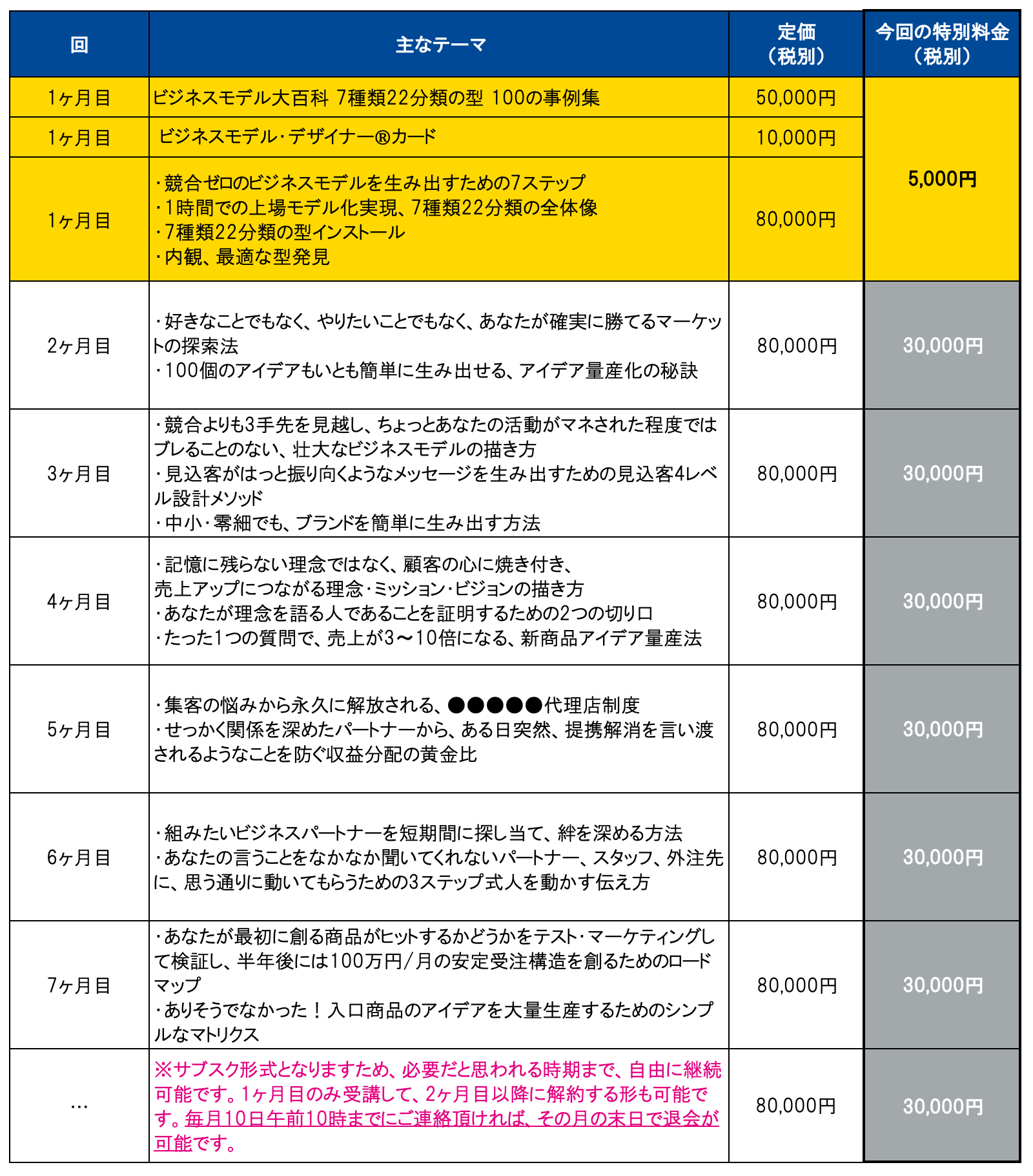 まずは、初月度であるこの4月この講座を1ヶ月間だけでも5,000円で受講をされ、あなたがビジネスモデルを創出する上で活用できそうかどうかをご判断頂けたらと思います。
